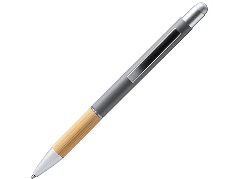 Элегантная металлическая шариковая ручка с матовым покрытием, бамбуковой ручкой и стилусом.