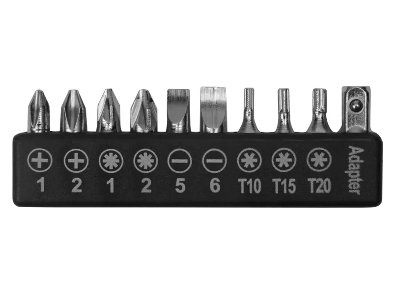 Набор инструментов в удобном пластиковом кейсе, состоит из 6 инструментов и 16 насадок:
