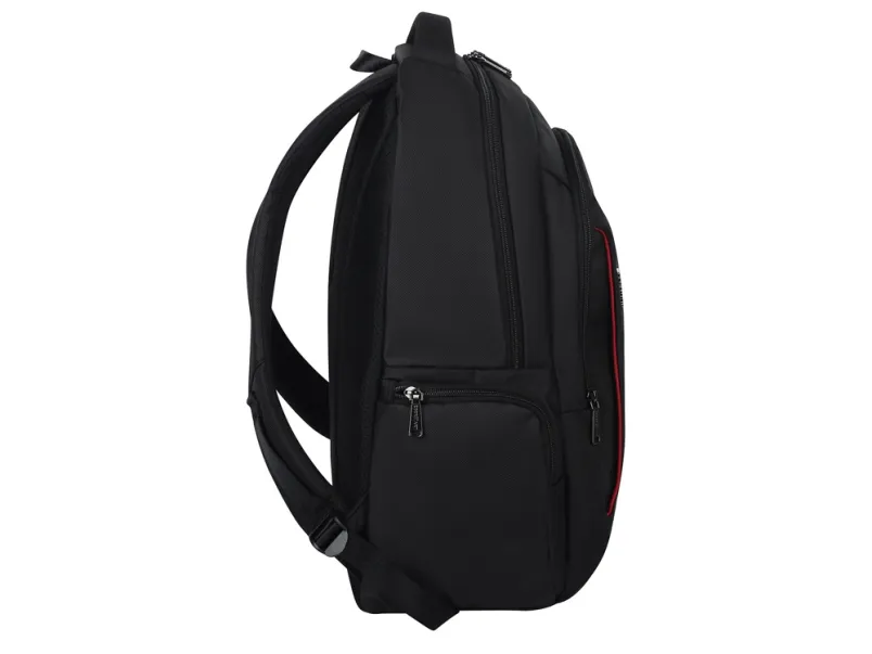 Вместительный и большой бизнес-рюкзак с элегантной красной отделкой подойдет как для передвижения по городу, так и деловых поездок. Рюкзак состоит из большого отделения, наружного кармана спереди и двух боковых карманов на молниях, создающих дополнительное удобство. Внутри многофункциональный органайзер с сетчатым карманом на молнии, сетчатая спинка. Лямки регулируются по длине.