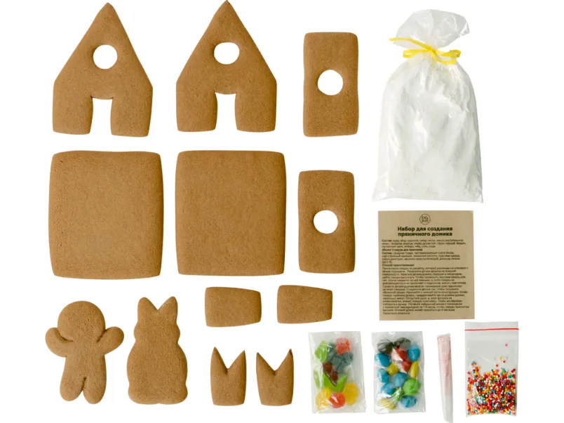 Мы ценим ваше время, поэтому уже выполнили всю рутинную часть приготовления домика. Наш вариант домика уже выпечен и готов к сборке и украшению. Созданный вашими руками домик будет уникальным, так как результат ограничивается только вашей фантазией и творчеством.