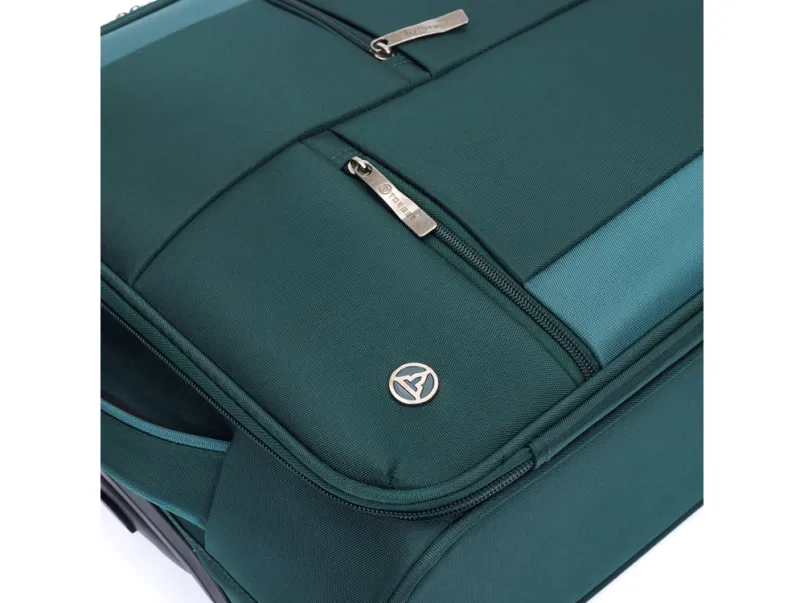 Чемодан полностью раскрывается на 2 отделения, с перегородкой на молнии и ремнями для надежной фиксации вещей на месте.