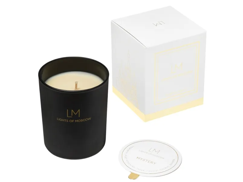 Коллекция аромасвечей “Exclusive” является уникальной не только из-за ароматов коллекции, но и благодаря тщательно разработанному дизайну упаковки, которая является напоминанием о том, что бренд Lights of Moscow - это ручное российское производство в самом центре Москвы. Белая коробка оформлена ярким золотым фольгированием, на левой стороне которой изображен Храм Василия Блаженного - одна из главных достопримечательностей на Красной площади в Москве.