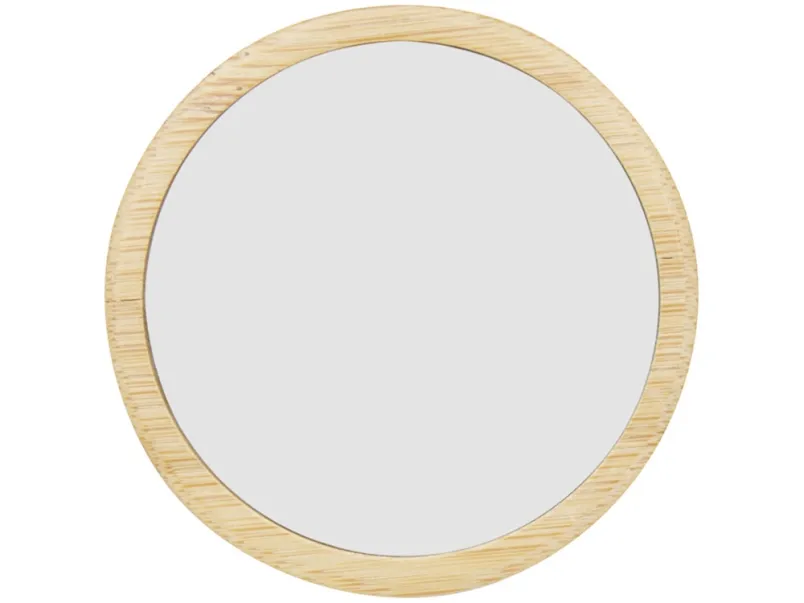 Круглое зеркало из бамбука в хлопковом мешочке.