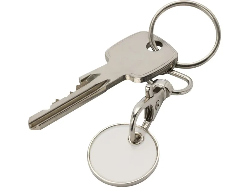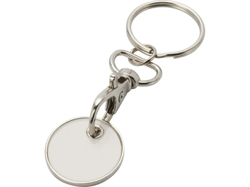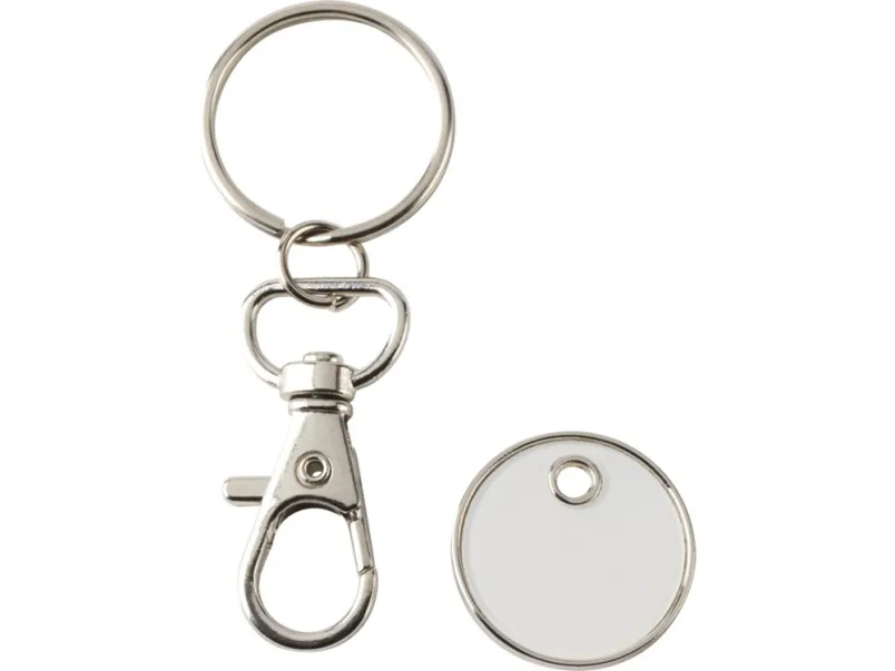 Брелок Rory с цветной монетой для тележки подходит для большинства тележек супермаркетов, позволяя открывать их без монет или жетонов. Цинковый сплав.