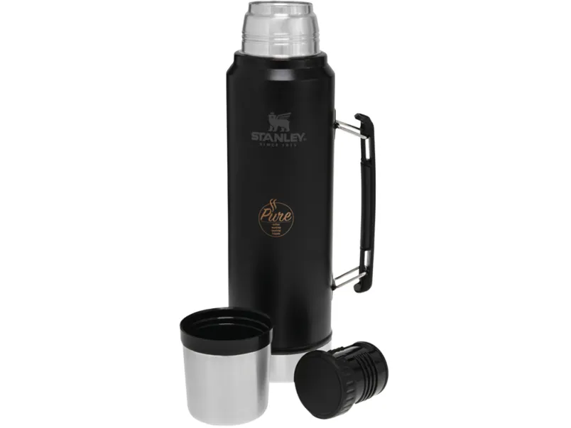 Бутылка Stanley объемом 1 литр имеет прочную конструкцию и вакуумную изоляцию, позволяющую сохранять напитки горячими или холодными в течение 24 часов. Бутылка достаточно тонкая, чтобы ее можно было держать одной рукой, и оснащена поворотной пробкой для более удобного наливания. Изолированная крышка также служит чашкой для питья. Бутылку можно мыть в посудомоечной машине, она герметична, устойчива к опотеванию, не бьется и легко чистится. нержавеющая сталь.