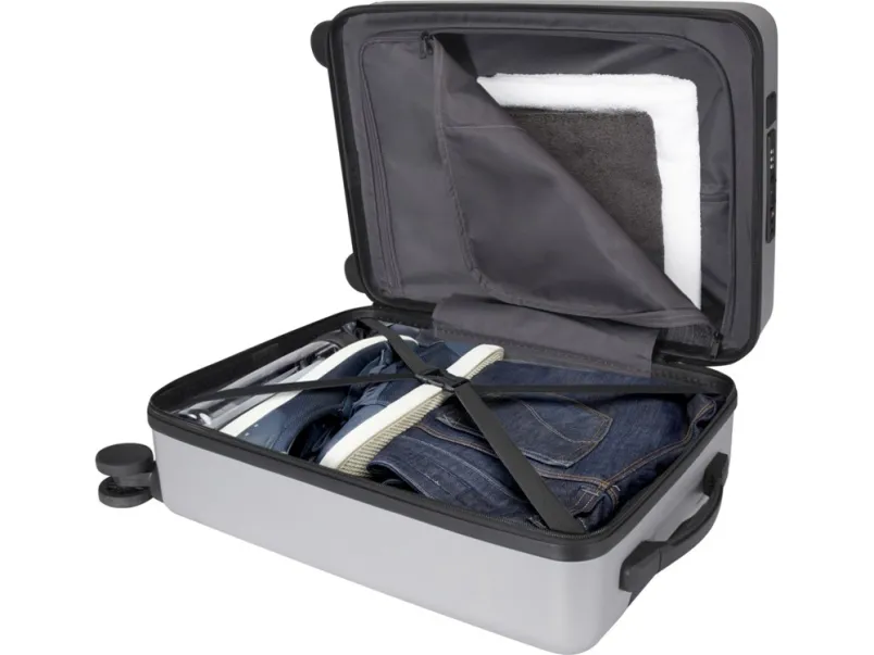 Чемодан на колесах для ручной клади Rover Pro диагональю 20" действительно выделяется своим открывающимся спереди отделением для ноутбука диагональю 20" и встроенным USB-портом для зарядки, что делает ее идеальным спутником как в деловых поездках, так и на отдыхе. Этот чемодан на колесиках изготовлен из ударопрочного переработанного пластика, сертифицированного согласно GRS, и качественной подкладки из RPET, а также оснащен открывающимся спереди отделением для ноутбука с карманами-органайзерами для электронных аксессуаров, а также кодовым замком TSA как для основного, так и для открывающегося спереди отделения. Чемодан также оснащен двухколесными вращающимися на 360 градусов роликами для удобства использования в аэропортах. Можно брать с собой в качестве ручной клади на рейсах большинства основных авиакомпаний. GRS certified recycled ABS.