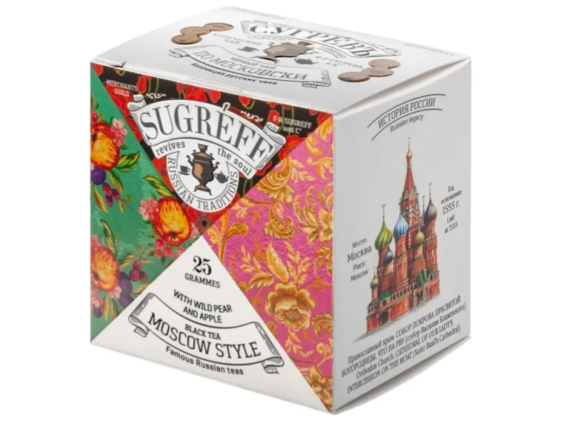Чай «ПО-МОСКОВСКИ» сделан на основе купажа чёрного байхового чая с добавлением самых разных фруктов и ягод. Именно такой вкусный «чайный компот», когда в большую кастрюлю с чаем в изобилии добавляются фрукты и ягоды, принято варить в цыганских общинах.