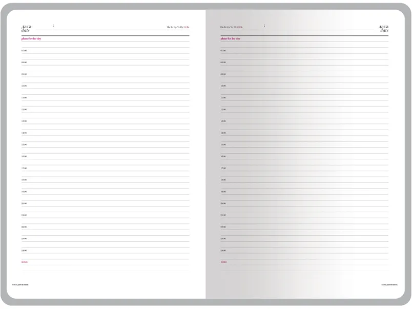 В ежедневнике «Sidney Nebraska» есть полезная справочная информация и телефонная книга на 18 листов, а также 272 страницы для записи идей, мыслей и составления рабочих планов. Специально для ежедневных офисных дел в ежедневнике используется качественная белая бумага плотностью 70 г/м². Разметка блока с указанием времени позволяет планировать дела с точностью до 1 часа.