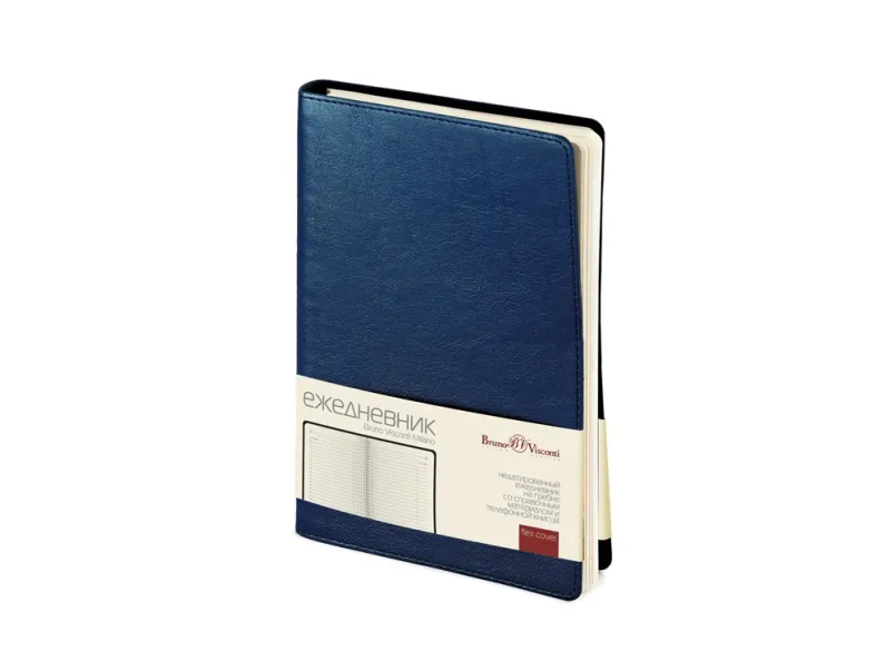 Ежедневник «Milano» от бренда Bruno Visconti - это сочетание элегантности и практичности. Закругленная обложка из классического переплетного материала - хорошая альтернатива натуральной коже. Форма обложки подчеркнута аккуратной строчкой по краю. Внутренний блок формата А5 на современном креплении – полускрытом гребне – содержит 272 страниц. Для них подобрана первосортная бежевая бумага повышенной плотности (70 г/кв м). Помимо рабочих страниц в структуру блока включены телефонная книга и справочный раздел. На страницах для планирования есть удобная почасовая разбивка.