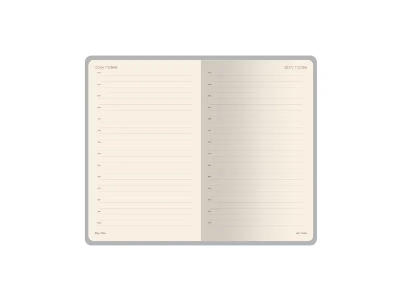 - раздел для планирования имеет линовку серого цвета с указанием времени (интервалы в один час) и выполнен из бежевой бумаги плотностью 70 г/кв.м;