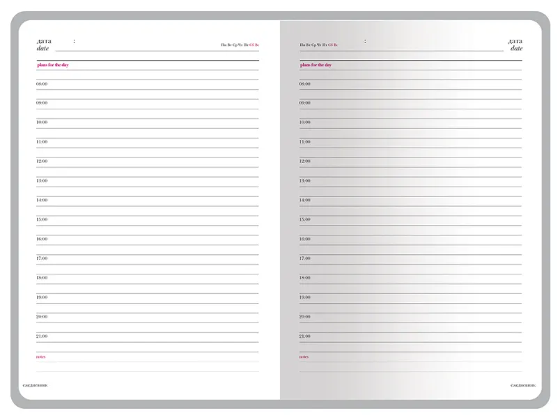 Недатированные страницы в серую линейку имеют отдельное место для проставления числа месяца и дня недели. Справочный блок на 14 страницах содержит полезную информацию из различных областей.