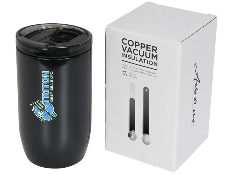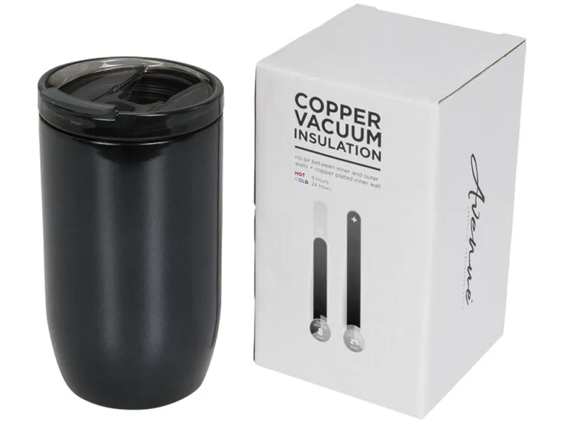 Герметичный термостакан Lagom 380 мл с медной вакуумной изоляцией. Прочный компактный стакан, идеально подходящий для путешествий. Герметичная откидная крышка с уплотнением и открывающимся отверстием для питья. Стакан с двойными стенками из нержавеющей стали и вакуумной медной изоляцией сохраняет напитки горячими в течение 8 часов и холодными в течение 24 часов. Конструкция стакана предотвращает образование конденсата на внешней стороне. Объем – 380 мл. Предлагается в подарочной коробке Avenue. Нержавеющая сталь.