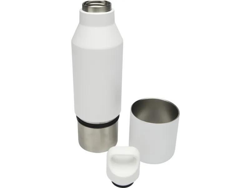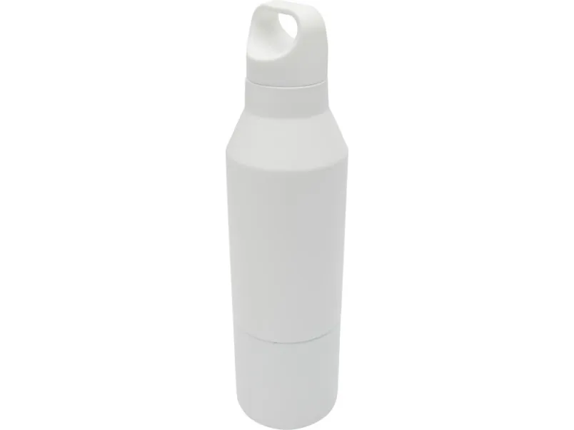 Бутылка из нержавеющей стали с двойными стенками и медной изоляцией, сертифицированная согласно RCS, со съемной крышкой. Эта многофункциональная бутылка помещается в боковой карман рюкзака и имеет удобную ручку для переноски, встроенную в крышку. Прочное порошковое покрытие снаружи. Напитки останутся горячими в течение 12 часов и холодными в течение 24 часов. Поставляется в подарочной коробке из переработанного картона. Объем бутылки: 600 мл. Объем кружки: 300 мл. Recycled stainless steel. упаковка FSC Mix Credit P5.1 CU-COC-877277.
