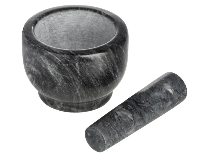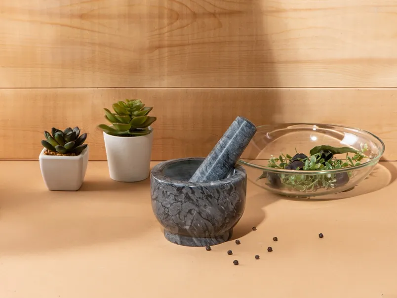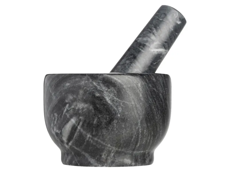 Ступка из натурального мрамора "Pesto" — по-настоящему благородное дополнение вашей кухни, которое не только украсит ее, но и пригодится при готовке. Материал не впитывает запахи, легко моется, имеет приятную текстуру и выглядит действительно достойно.