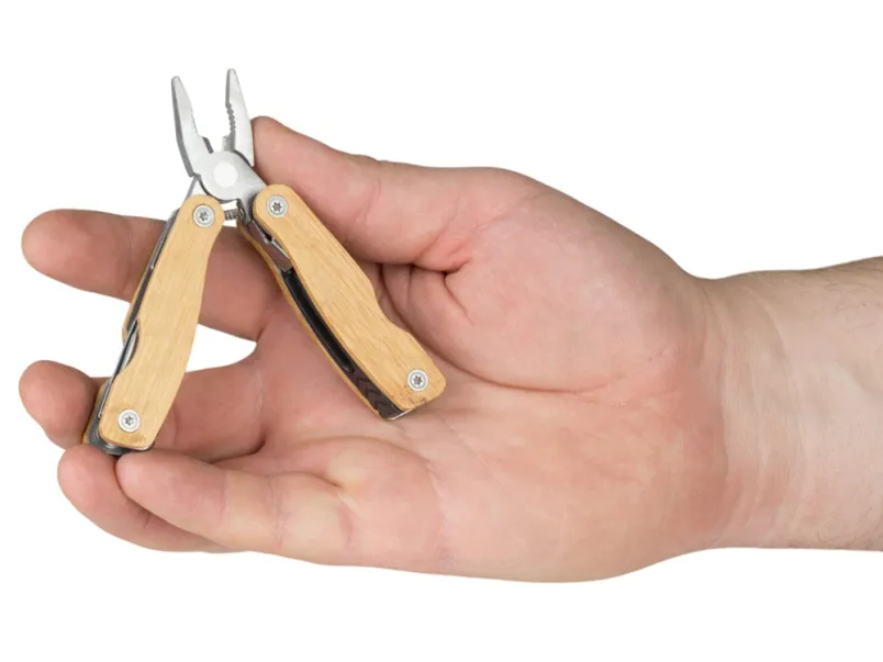 Компактный мультитул на каждый день с корпусом из бамбука. Поставляется в коробочке с чехлом.