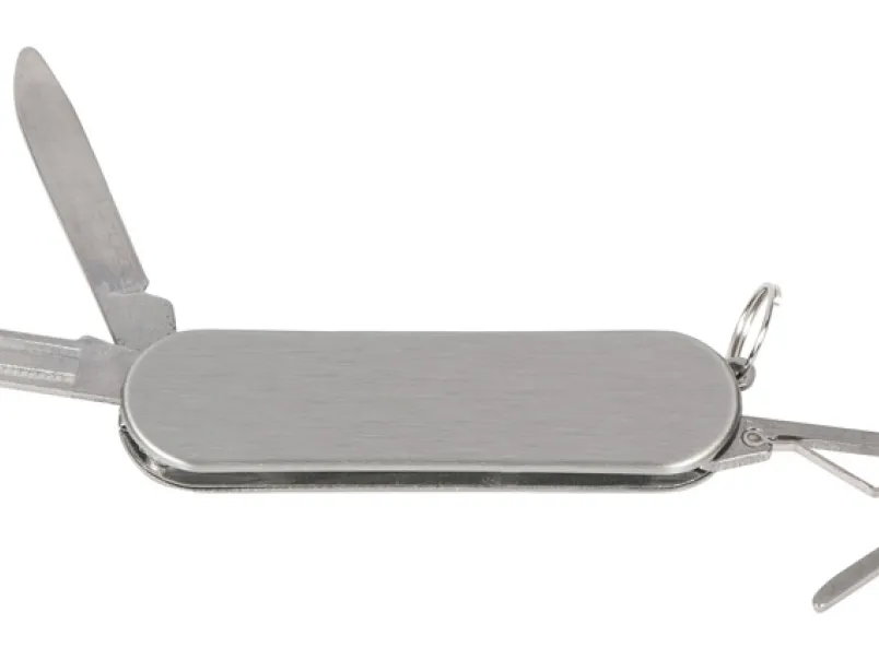 Компактный складной мультитул, в котором несмотря на его маленький размер, целых три функции: нож, пилка для ногтей, ножницы. Корпус и функциональные части выполнены из нержавеющей стали. Небольшой вес позволяет использовать в качестве брелка, чтобы он всегда сопровождал вас и мог прийти на помощь в любой ситуации.