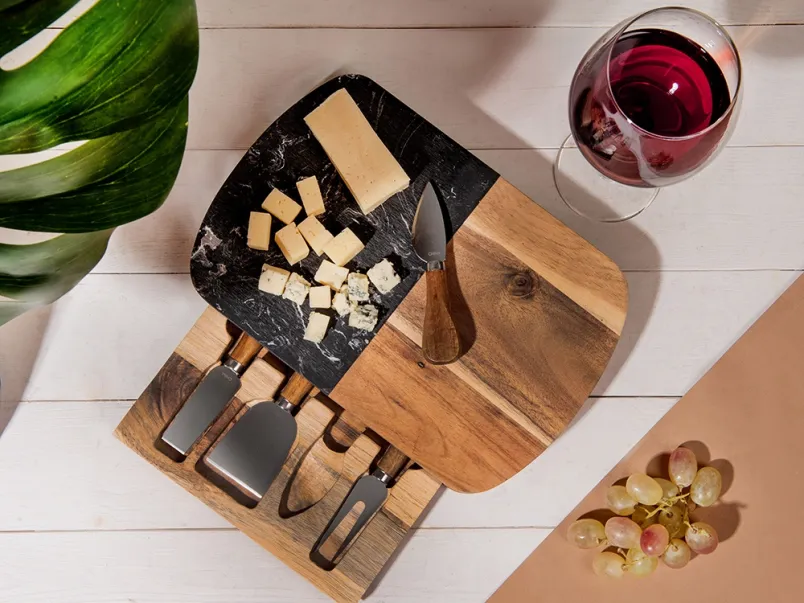 Набор для сыра в подарочной коробке из акации и мрамора «Date»