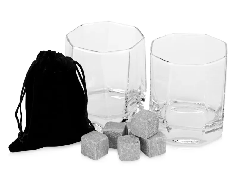 Набор для виски "Buddies" станет прекрасным дополнением к этому благородному напитку. Набор упакован в брендированную коробку, в которой вы найдете бокалы и камни в мешочке. Камни выполнены из талькохлорита, бокалы — из стекла.