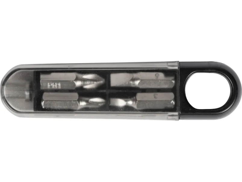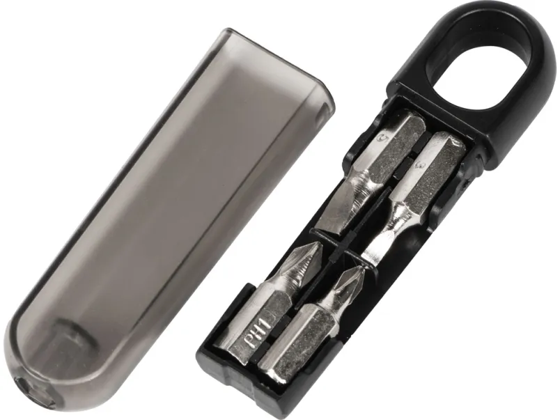 Набор отверток состоит из 4 бит (две крестовые, две поперечные разного размера), которые подсоединяются к ручке-кейсу. Благодаря прозрачной крышке все биты видны, даже когда кейс закрыт, что помогает держать их количество под контролем. • ручка-кейс с отверстием для подвешивания • прозрачная крышка не даст потерять биты • 4 биты