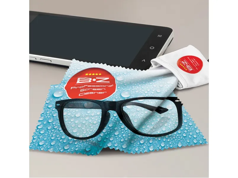 Практичный подарок, который станет отличным сувениром для салонов оптики, медицинских учереждений или магазинов фото- и видеотехники. Мягкая салфетка из микрофибры поможет качественно очистить линзы или экраны, не оставляя царапин на стекле и пластике. Удобный чехол с карабином поможет взять салфетку с собой, прикрепив её к сумке, рюкзаку или сумке-слингу и защитит саму салфетку от загрязнений. На салфетку можно нанести свой принт с помощью полноцветной печати.