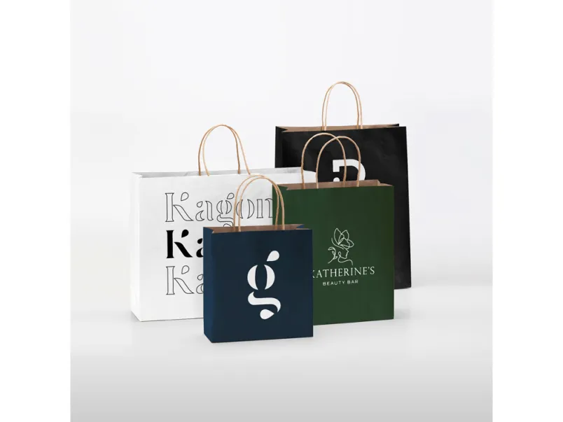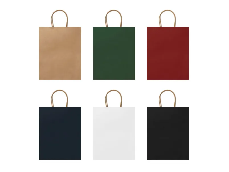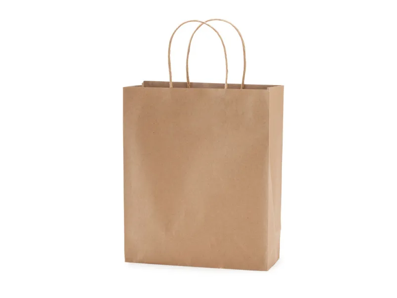 Бумажный пакет 110 г/кв.м натуральной отделки с усиленными короткими ручками витого дизайна.