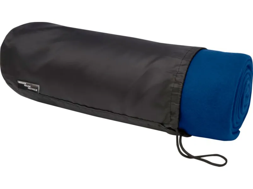 Плед из флиса, вторичного ПЭТ, подходит для использования в помещении и на улице. 100% переработанный полиэстер, 180 g/m2. Поставляется с сумкой для переноски из вторичного ПЭТ 190T с застежкой на шнурке. Размер сумки d13 х 34 см. Упаковано в полиэтиленовый пакет из переработанного материала.