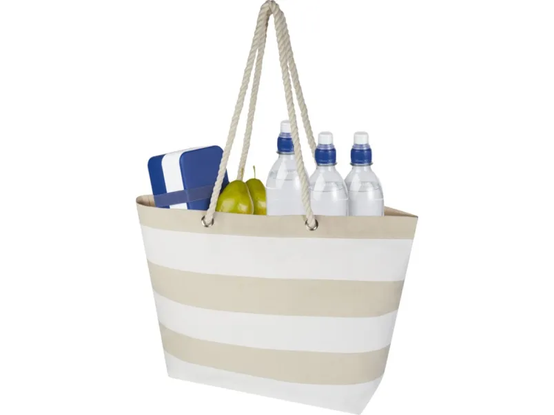 Эко-сумка Florida, изготовленная из 100% переработанного хлопка, сертифицированного согласно GRS, — это идеальная сумка для переноски всего необходимого для дня на пляже или повседневной прогулки. Хлопок плотностью 270 г/м² делает эту сумку прочной и долговечной, а веревочные ручки позволяют переносить тяжелые предметы в основном отделении. Длина ручек: 45 см. Выдерживает вес до 10 кг. Объем: 18 литр. GRS certified recycled cotton, 270 g/m2.