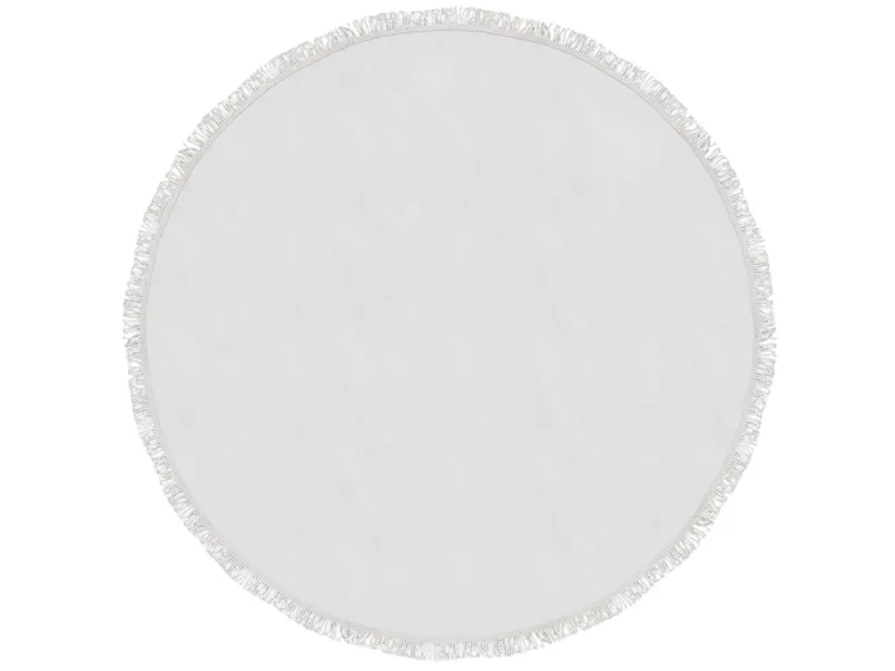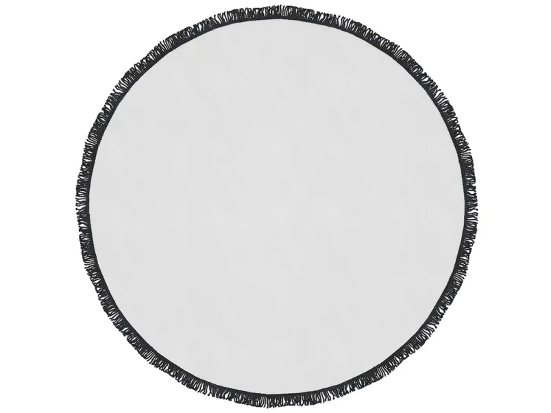 Необычный и трендовый вариант классического пляжного аксессуара. Круглая форма полотенца помогает быстро и удобно расстилать его на земле или шезлонге. Плотный полиэстер сохнет быстрее обычных тканей, поэтому полотенцу не требуется дополнительная упаковка после использования - достаточно ненадолго развесить его для просушки. Полноцветная печать на полотенце производится с помощью сублимации. Бахрома по краю может быть изготовлена в двух цветах (белый и чёрный) на выбор клиента.