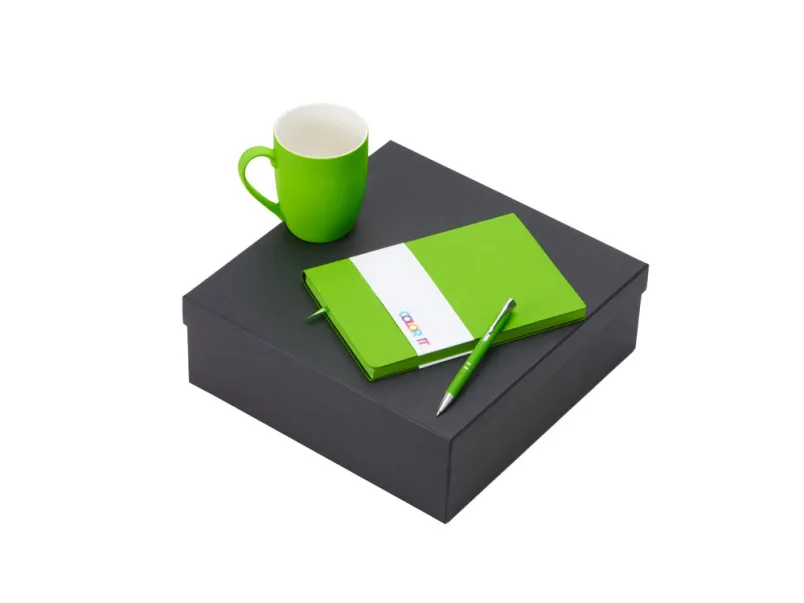 Подарочный набор «COLOR IT» с блокнотом, металлической ручкой и кружкой - зеленое яблоко