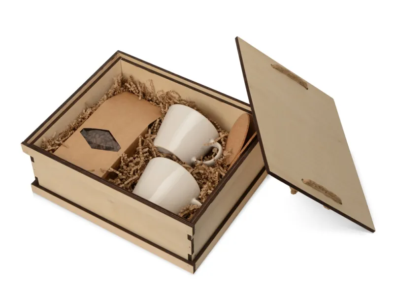 кружки- керамика, костеры- пробка, коробка- березовая фанера толщиной 6 см