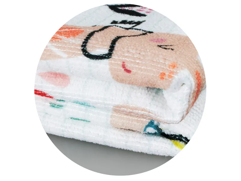 Полотенце подходит для полноцветной печати методом сублимации, которая передаёт все оттенки и детали изображения. Отделка по краю цветной оверлочной нитью добавляет яркую запоминающуюуся деталь.