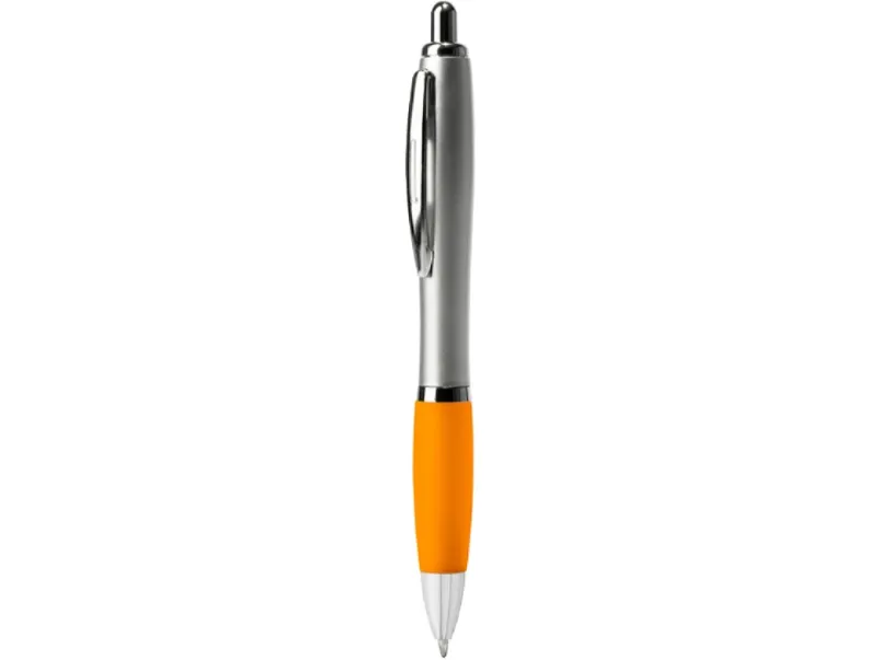 Шариковая ручка с серебристым корпусом из АБС-пластика и полупрозрачным мягким грипом