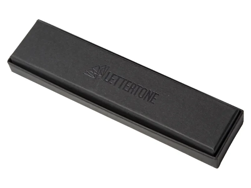 Поставляется в чёрной матовой коробочке с прозрачным логотипом «Lettertone» на дне.