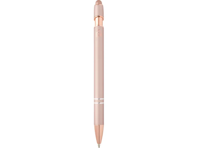 Шариковая ручка Nanna с покрытием из розового золота имеет корпус из переработанного алюминия и сенсорный стилус из силикона. Переработанный алюминий уменьшает количество отходов на свалках и помогает сохранять природные ресурсы для сокращения выбросов парниковых газов. Цвет чернил: черный. Длина непрерывной линии: 800 метров. Размер пера: 1,0 мм. Recycled Aluminium.