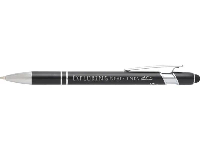 Шариковая ручка Kish с серебряным покрытием имеет корпус из переработанного алюминия и сенсорный стилус из силикона. Переработанный алюминий уменьшает количество отходов на свалках и помогает сохранять природные ресурсы для сокращения выбросов парниковых газов. Цвет чернил: черный. Длина непрерывной линии: 800 метров. Размер пера: 1,0 мм. Recycled Aluminium.