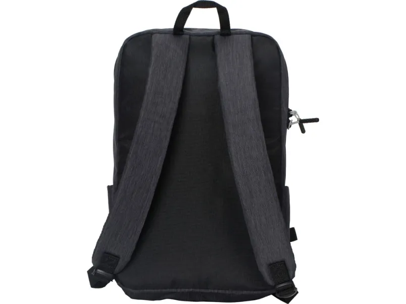 Маленький рюкзак с карманом для ноутбука в основном отделении, передним карманом на молнии и двумя боковыми открытыми карманами для бутылок. Амортизирующая подкладка.