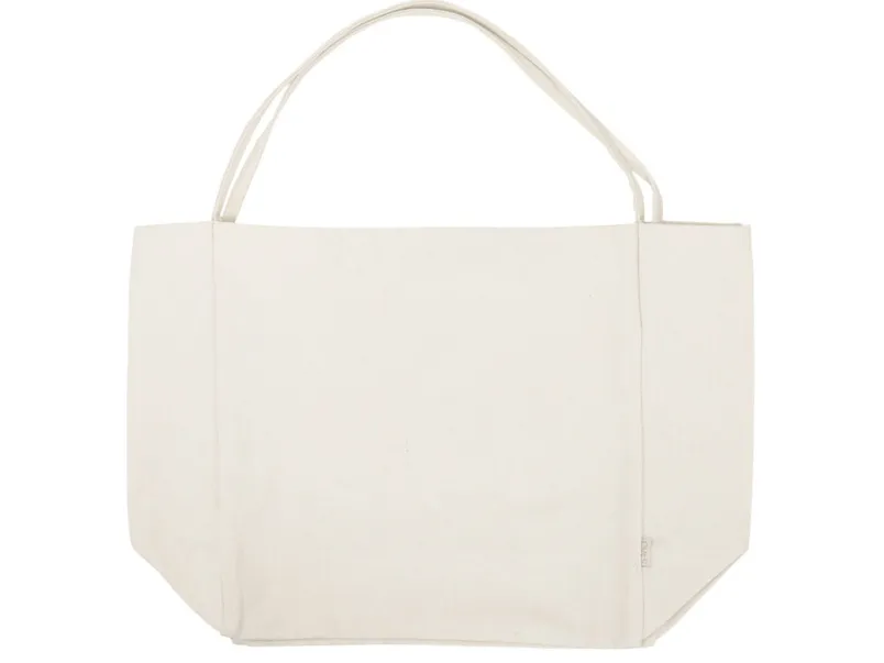 Сумка-шоппер из переработанного хлопка очень вместительна благодаря донной складке. Удобные широко расположенные лямки создают дополнительный комфорт при ношении.