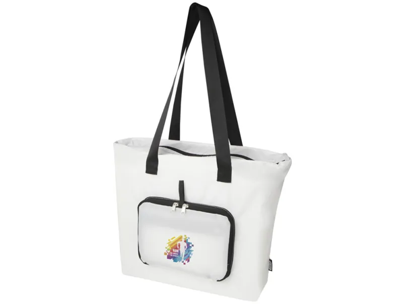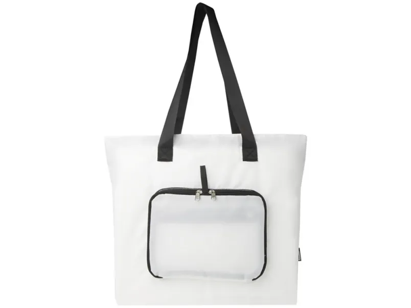 Эта легкая, но прочная эко-сумка, созданная для удобства и практичности, легко складывается в компактный мешочек с плетенной петлей, которую можно повесить или носить с собой. Она идеально подходит для походов по магазинам или в качестве запасной сумки, которая всегда с собой. Имеет просторное основное отделение на молнии, передний карман на молнии и две длинные ручки из качественного гладкого тканого материала. Изготовлен из переработанного полиэстера без содержания ПВХ. Объем: 16 литр. GRS certified recycled polyester.