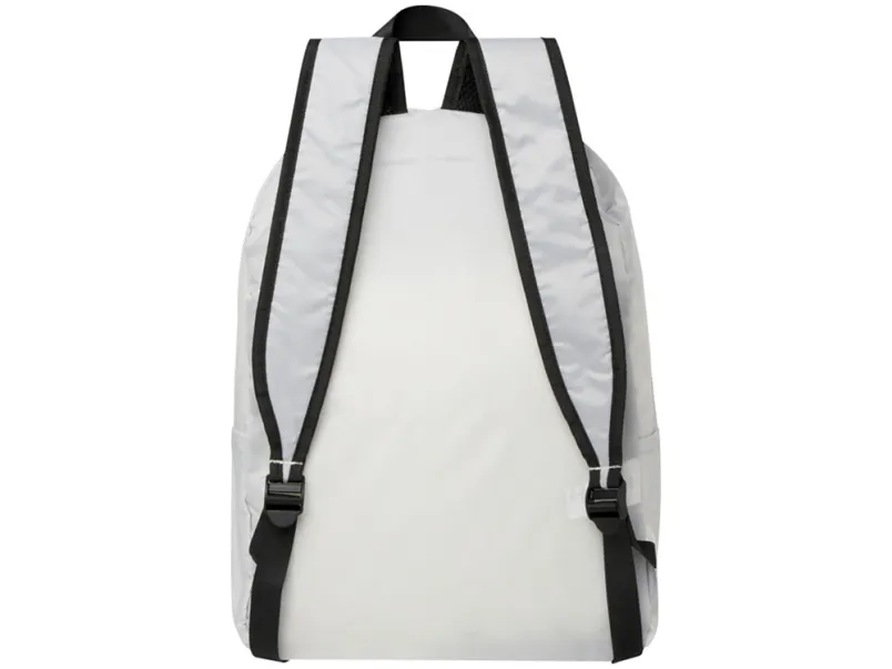 Этот легкий, но прочный рюкзак, созданный для удобства и практичности, легко складывается в компактную сумку с плетенной петлей для подвешивания или переноски, что делает его идеальным для путешественников, туристов и повседневного использования. Основное отделение на молнии, передний карман на молнии, два боковых кармана и регулируемые плечевые ремни. Изготовлен из переработанного полиэстера без содержания ПВХ. Объем: 15 л. GRS certified recycled polyester.