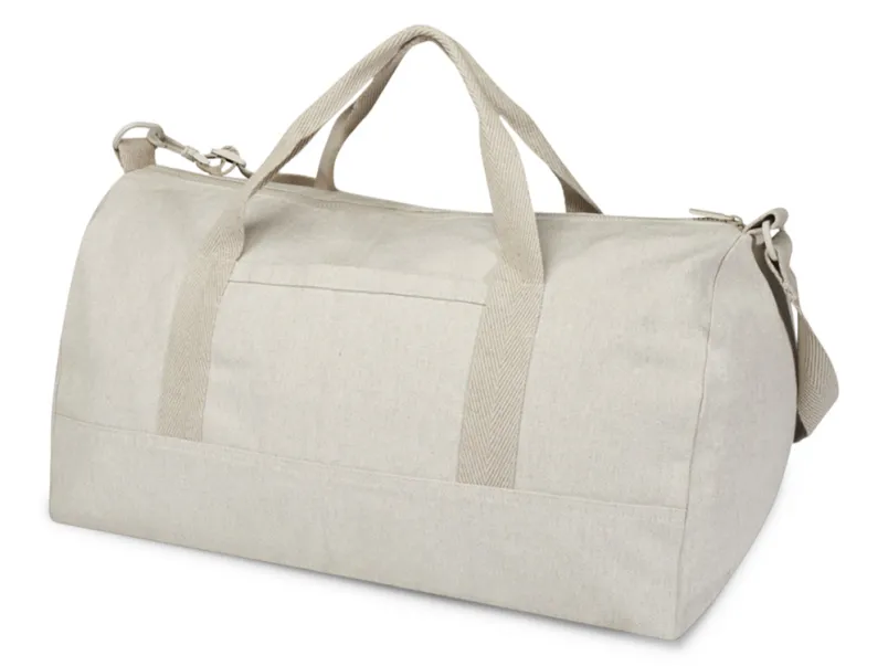 Спортивная сумка Porter, изготовленная из переработанного хлопка и переработанного полиэстера плотностью 500 г/м², имеет просторное основное отделение для оптимального хранения крупных предметов и небольшой передний накладный карман для хранения мелких предметов, таких как паспорт или телефон. Сумку можно носить за две короткие ручки или за съемный и расширяемый плечевой ремень, длину которого можно отрегулировать для максимального удобства. Спортивная сумка изготовлена из переработанных волокон Cyclo®, в которых используются предварительно отсортированные отходы, определяющие цвет пряжи. Эти волокна не только снижают потребность в первичных ресурсах, но и демонстрируют приверженность циклическому образу жизни, воплощая суть сокращения отходов и продвижения системы с замкнутым контуром. Каждая сумка также поставляется с индикатором Aware™. Эта инновационная функция позволяет пользователям отслеживать происхождение и путь своего товара с помощью QR-кода, повышая прозрачность цепочки поставок и способствуя более прочной связи между продуктом и процессом его производства. Объем: 50 литр. 70% Переработанный Хлопок, 30% Переработанный Полиэстер, 500 г/м2.