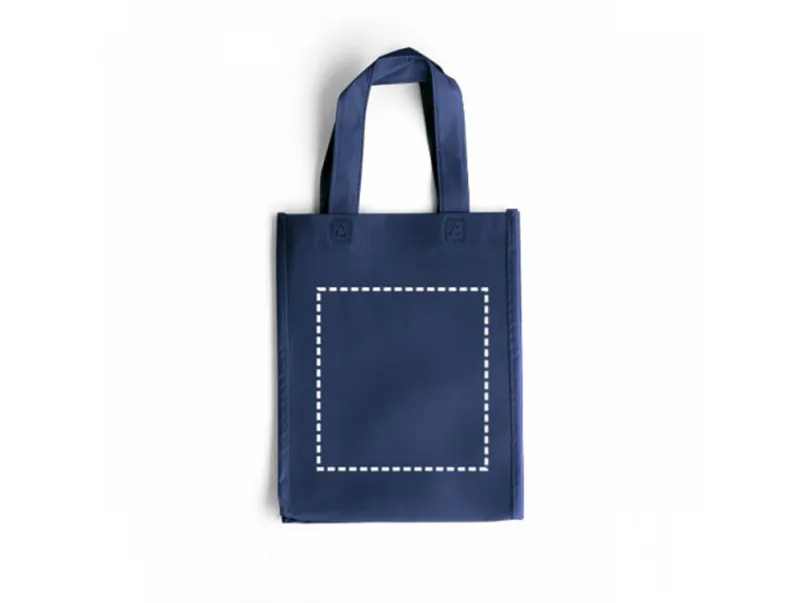Сумка из спанбонда (80 г/м²) с ручками длиной 30 см. Вид нанесения, рекомендуемый поставщиком: трансфер, текстильный принтер