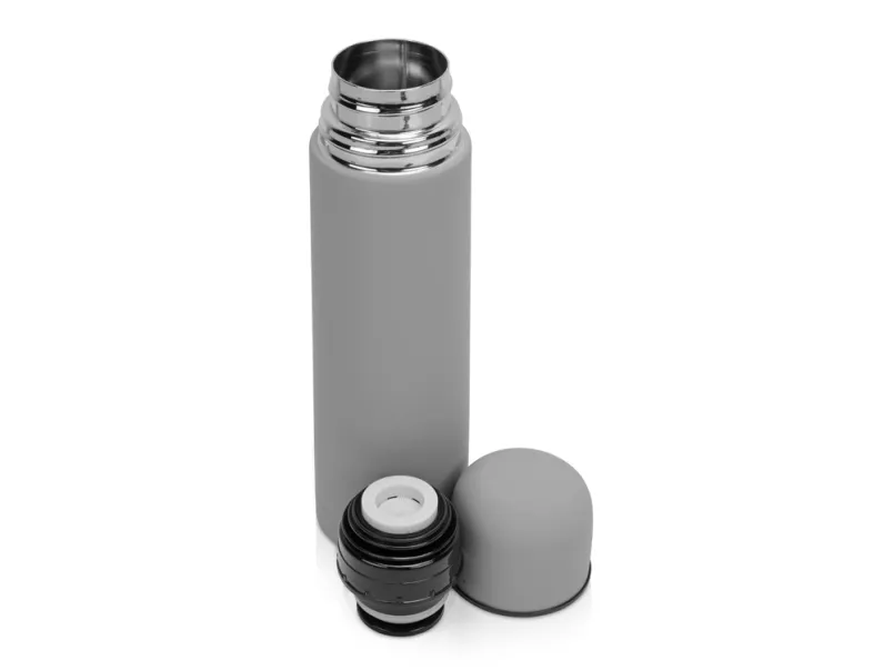 Универсальный термос с мягким прорезиненным покрытием софт-тач. Удобно и приятно держать в руке. Благодаря вакуумной изоляции и двойным стенкам сохраняет напитки горячими 24 часа. Герметичный клапан открывается и закрывается по легкому нажатию. Термос поставляется в дорожном чехле из искусственной кожи.
