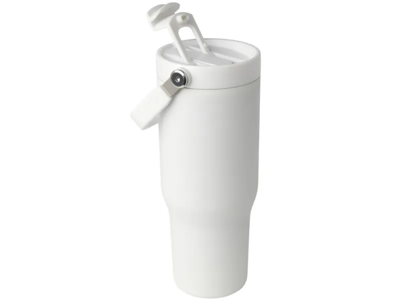 Кружка Bronx объемом 900 мл изготовлена из нержавеющей стали, сертифицированной по стандарту RCS, и имеет двустенную вакуумную конструкцию с медной изоляцией. Крышка имеет двойную функцию: складная трубочка для удобства питья и откидной верх с удобной складной ручкой для удобства переноски. Подходит для большинства автомобильных подстаканников. Поставляется в подарочной коробке из переработанного картона. RCS certified recycled stainless steel. Упаковка FSC Mix Credit P5.1 CU-COC-877277.
