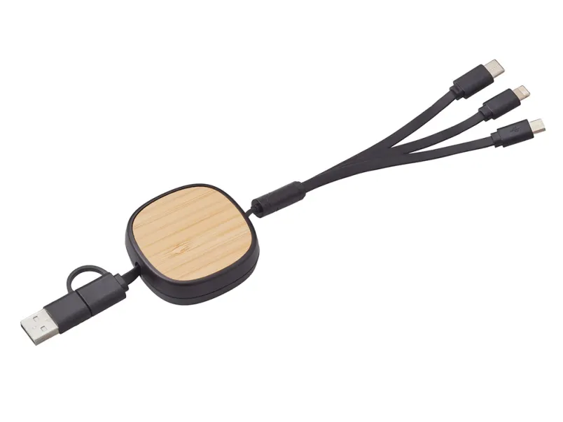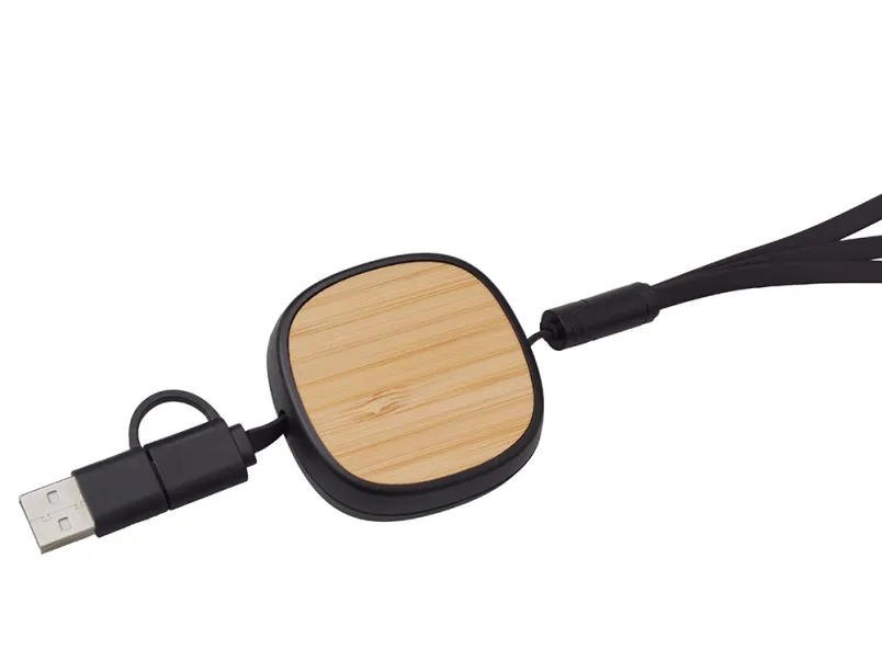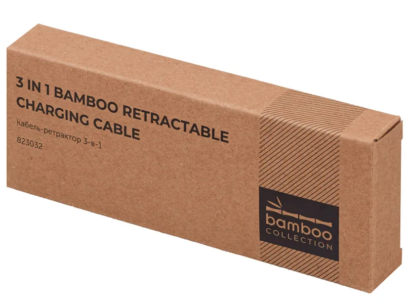 Универсальный кабель с ретрактором 3-в-1 «Retrax» — это стильное и практичное решение для зарядки и передачи данных на ходу. Компактный корпус из экологичного бамбукового покрытия сочетается с удобной системой автоматического складывания, что делает его идеальным спутником в путешествиях, на работе и в повседневной жизни. Кабель оснащён тремя разъёмами: USB-A, Micro-USB и Lightning, обеспечивая совместимость с широким спектром устройств — от смартфонов до планшетов и других гаджетов. Благодаря прочной конструкции и элегантному дизайну, «Retrax» станет незаменимым аксессуаром для тех, кто ценит функциональность и стиль. Поставляется в фирменной коробке bamboo collection.