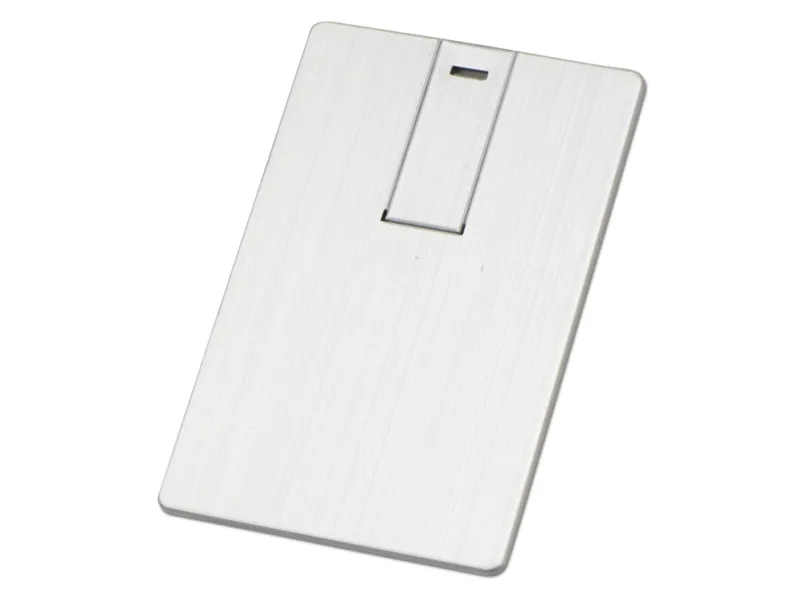 Тонкая алюминиевая флешка (3 мм) в форме визитки. Две плоские стороны под гравировку.