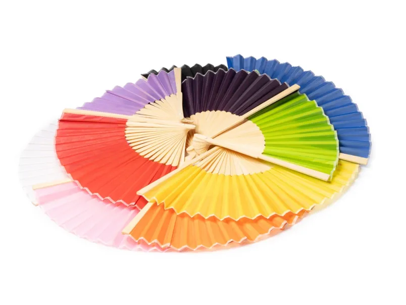 Веер с пластинами из бамбука и полотном из полиэстера.