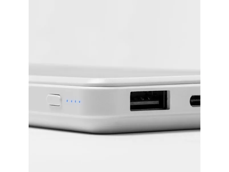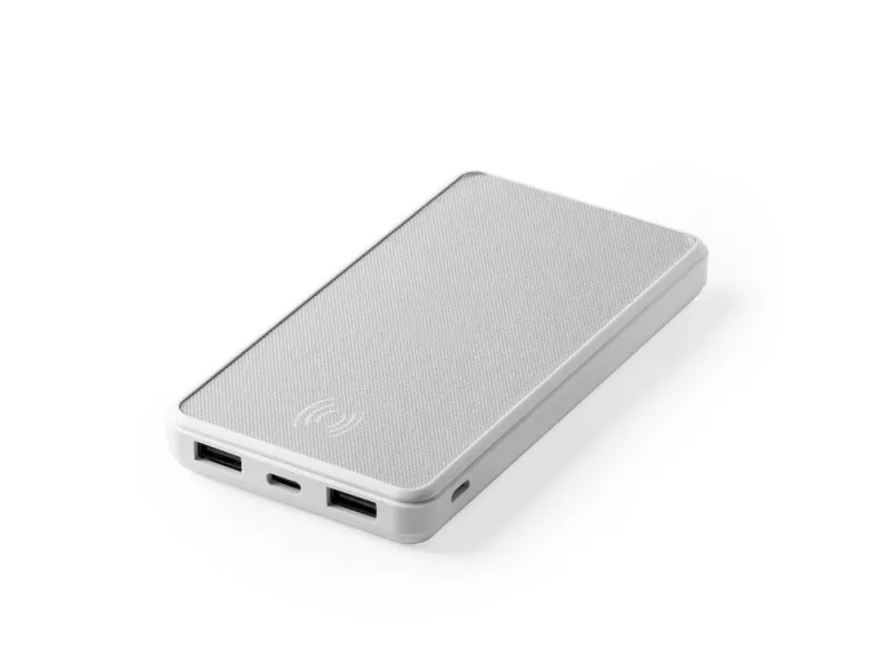 Внешний аккумулятор емкостью 8000 мАч с корпусом из переработанного ABS и поверхностью из ткани RPET. Выходной ток USB: DC5V/2.1A. Беспроводной 10 Вт. В комплект входит кабель Micro USB.