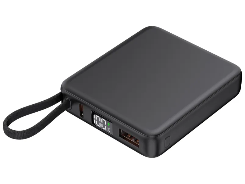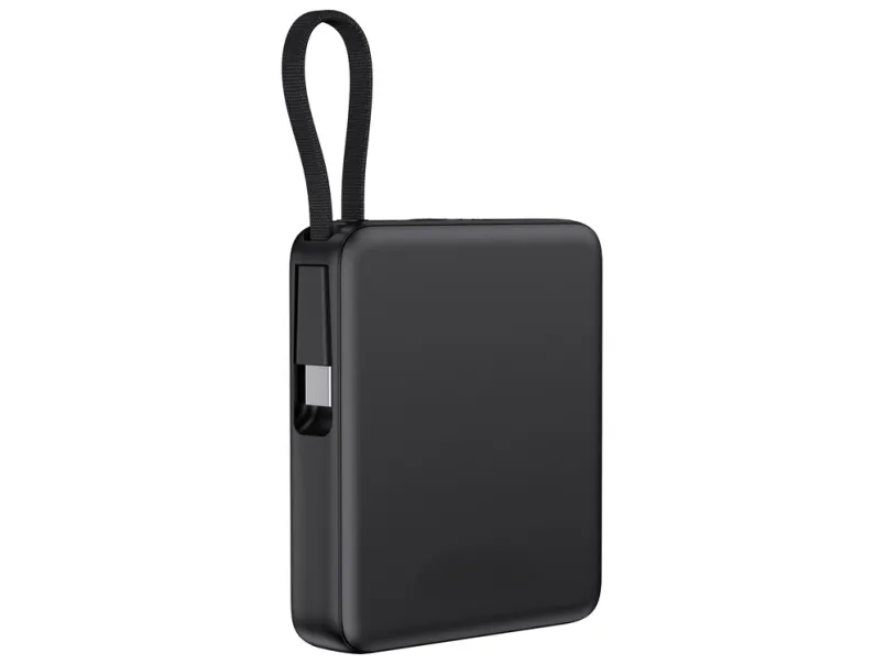 - Встроенный кабель Type-C и он же петелька для переноски: Современный стандарт Type-C, подходящий для зарядки всех последних популярных смартфонов, включая iPhone. Кабель также выполняет роль удобной петельки