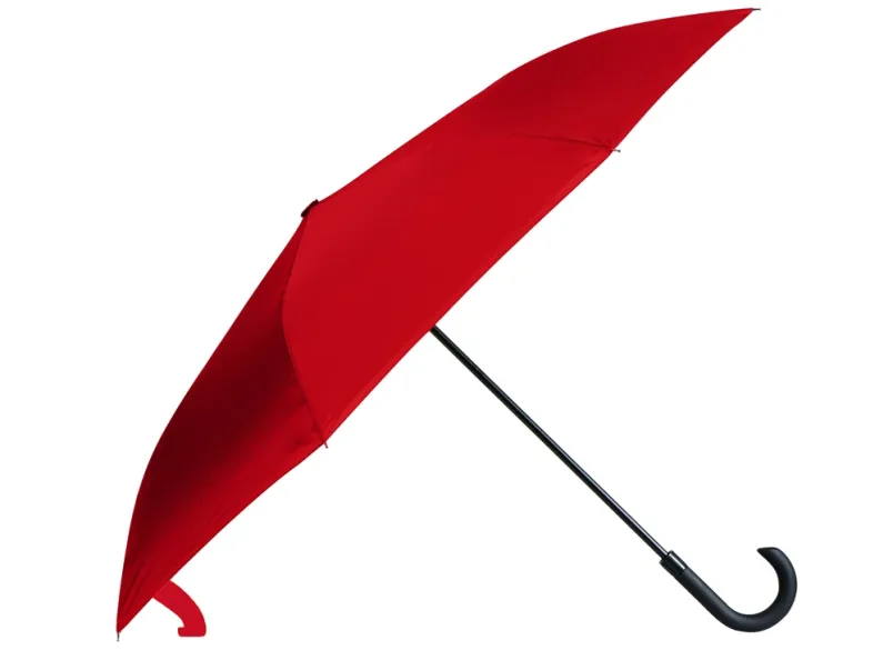 Зонт с обратным сложением складывается "внутрь". Очень удобен в использовании, например, во время посадки в машину при складывании вода остается внутри купола. Для просушки зонт можно поставить вертикально на пол в сложенном виде, что позволяет воде стекать без раскрытия зонта. Двойной купол из 190Т эпонжа. Ручка с мягким покрытием soft-touch для большего комфорта.